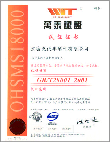 公司已先后通過IATF16949質(zhì)量管理體系認(rèn)證、ISO/14001環(huán)境管理體系認(rèn)證和OHSAS18001職業(yè)健康安全管理體系認(rèn)證。是“國家高新技術(shù)企業(yè)”“行業(yè)龍頭企業(yè)”和“全國百家優(yōu)秀汽車零部件供應(yīng)商”。